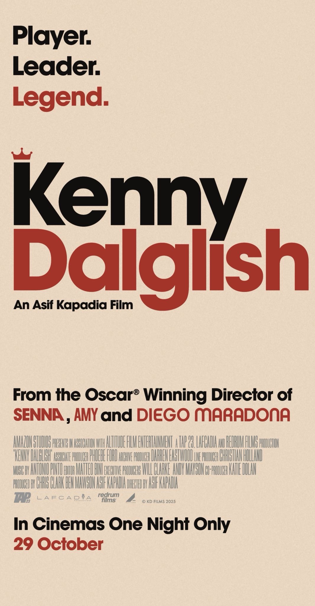 Kenny Dalglish is directed by Asif Kapadia, the Oscar and Bafta-winning director of Senna, Amy, and Diego Maradona.